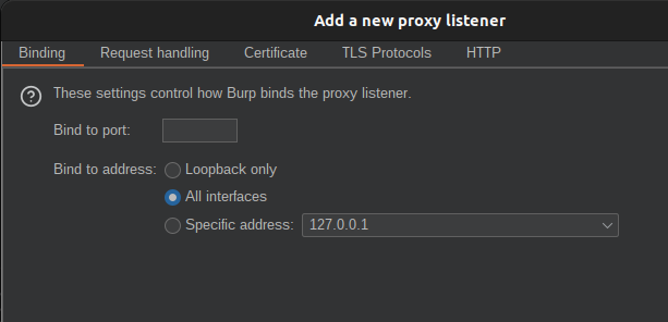 3. Retourner dans "Options" et créer un nouveau listener sur le port souhaité et écoutant sur **toutes les interfaces**.